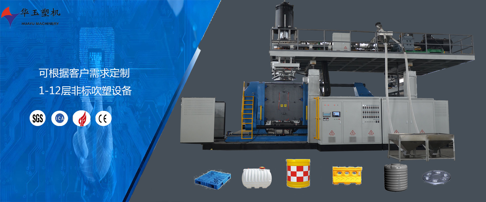 濰坊市華玉塑料機械有限公司創(chuàng)辦于貳零零貳年,是超大型全自動中空吹塑設備專業(yè)生產(chǎn)廠家。公司融合國內(nèi)外先進技術和理念,專業(yè)設計、生產(chǎn)、銷售一層到十層的大型全自動中空成型機組。我公司生產(chǎn)的各型號吹塑機可生產(chǎn)50升到30,000升的各類塑料水桶,噸桶、雙環(huán)桶、水馬、路錐、隔離墻托盤、桌板、浮筒、皮劃艇、工具箱包等中空制品。優(yōu)良的品質、穩(wěn)定的性能、優(yōu)越的性價比使公司產(chǎn)品不僅暢銷國內(nèi)市場,并出口到亞洲、東南亞、中東、歐洲、北美、南美、非洲等80多個國家和地區(qū),深受客戶的好評...
